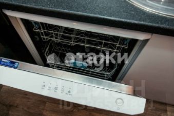Оборудована необходимой мебелью и техникой :посудомоечная машина,стиральная машина,микроволновая печь,духовой шкаф,варочная панель,холодильник,телевизор.Отдельная гардеробная.Также есть сушилка,гладильная доска,утюг и т.д.