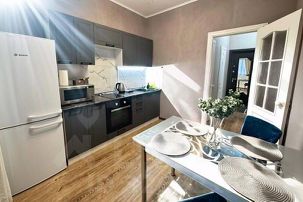 - Кухня оснащена всем необходимым для приготовления пищи: чайником, плитой, духовкой, микроволновой печью и холодильником