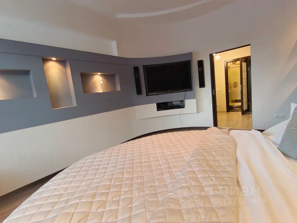 Круглая кровать с поворотным механизмом и подсветкой.