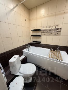 Санузел совмещенный, выполнен в современном стиле с качественной сантехникой.