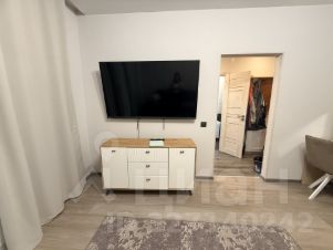 В комнате установлен телевизор и двуспальный диван. Имеется гардеробная комната для удобного хранения вещей.