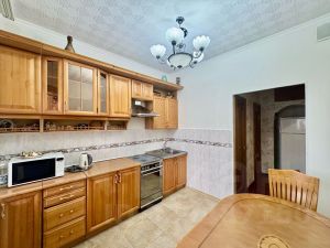 Балкон застеклен и отделан деревом, что добавляет уюта и позволяет наслаждаться видом из окна. В доме есть пассажирский лифт, а также открытая парковка во дворе. Санузлы раздельные, что удобно для семьи.