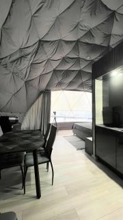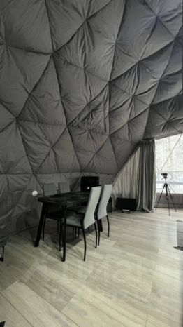 Впервые в Сургуте! Открылся Глемпинг Грин Сфера GS! Отдых на природе, сочетающий комфорт гостиничного уровня и близости к природе! Geo купол это футуристичный дом в виде прозрачной сферы! Это просто идеальное место для романтического отдыха и красивых фотографий! Находится в лесу, 30 соток векового леса! Интерьер дома выполнен в стиле Лофт, в одной цветовой гамме, часть купола это панорамные окно в пол, которое при необходимости можно закрыть шторами! Вид из дома открывается на лес, у дома есть терраса со всем необходимым! Загородный отдых с комфортом, уютный дом в форме сферы в котором имется две двуспальные кровати, кухня со всем необходимым, техника, посуда, душ с туалетом, в доме есть все для комфортного проживания! Кроме того есть электрический камин, который согреет в холодные вечера, создаёт уютную атмосферу! Дом рассчитан на небольшие компании на 6 человек, спальных мест 4, возможное размещение и 6 человек без доплаты и спальных мест! В доме имеется мультимедийный проектор с экраном, на котором можно посмотреть лучшие и легендарные фильмы, это очень атмосферно! Имеется зона барбекю с предоставлением шампуров и решёток! В глэмпинге имеется баня бочка сделана из натурального сибирского кедра, вместимость 6 человек! Круглая форма бани бочки позволяет жару равномерно распределяться в парном помещении, создавая необходимый комфорт! Комната отдыха оборудована лавочками и столом для небольшой компании! На территории глэмпинга имеется панорамная купольная беседка, которая имеет вид прозрачного стеклянного шара с освещением! Внутри беседки расположен гриль стол, который позволяет гостям сидеть вокруг него, обеспечивая лёгкость общения! Создаёт атмосферу, где каждый гость будет чувствовать себя уютно и комфортно! Гриль стол позволяет одновременно готовить еду и уютно засервировать стол! В панорамной купольной беседке есть все необходимое, посуда, решётки, шампура и много всего для вашего комфорта! Беседка вместимостью 10-12 человек! На территории имеется качели, парковка на 8 автомобильных мест!