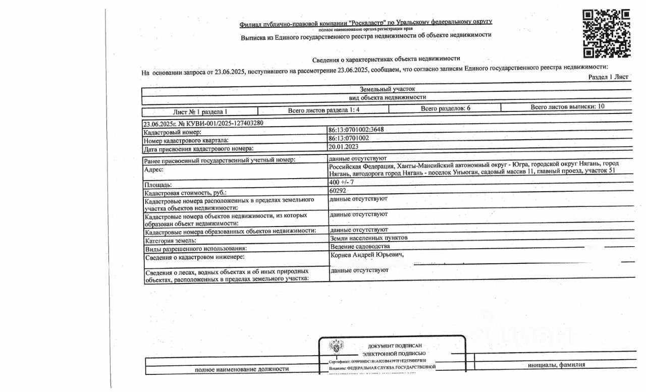 Должник: Грецкий П.А., собственник: Грецкий П.А. Лот: Земельный участок (земли населенных пунктов, ведение садоводства), площадь 400 кв.м., кадастровый номер: 86:13:0701002:3648, г. Нягань, п. Унъюган, садовый массив 11, главный проезд, уч. 51, н/ц: 63155 р, з-к: 9474 р., код: 0001, рег. 25-416;