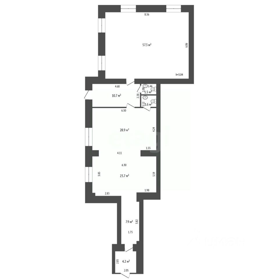 Помещение свободно от арендаторов и готово к немедленному использованию. Его ключевое преимущество — гибкая свободная планировка и два независимых входа с тамбурами, что позволяет эффективно зонировать пространство. Это открывает возможности для размещения двух отдельных бизнесов, например, розничного магазина и офиса услуг, или для организации единого просторного заведения.