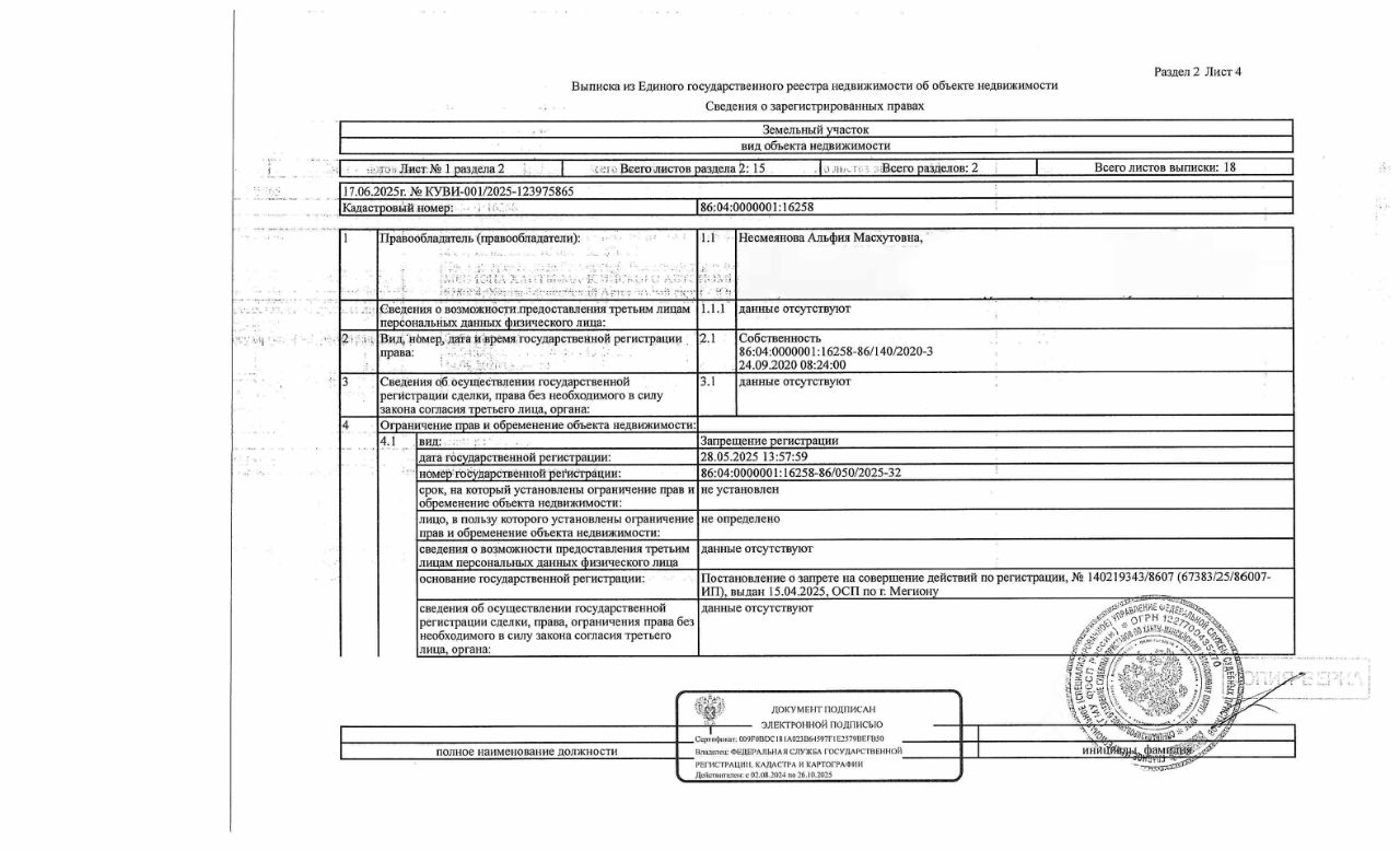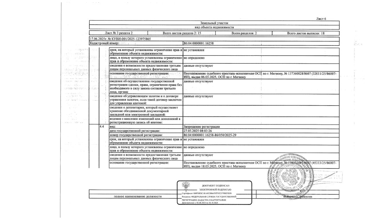 Должник: Маматова (Несмеянова) А.М., собственник: Маматова (Несмеянова) А.М. Лот: Земельный участок (земли сельскохозяйственного назначения, под садоводство), площадь 510 кв.м., кадастровый номер: 86:04:0000001:16258, г. Мегион, СОТ "Дорожник-3", уч. 132, (В соответствии с п. 21.1 ст. 26 ФЗ 218 "О государственной регистрации недвижимости" в ЕГРН отсутствуют сведения о местоположении границ данного земельного участка, что является основанием для приостановления процедуры государственной регистрации права собственности. Настоящим участники торгов уведомляются что обязанность по установлению границ земельного участка возложена на победителя аукциона, все расходы на проведение данной процедуры производятся силами и средствами победителя аукциона и МТУ Росимущества не компенсируются), н/ц: 179000 р., з-к: 26850 р., код: 0001, рег. 26-95-ГМУ;