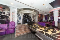 выразительная фиолетовая lounge-зона с мягкими диванами