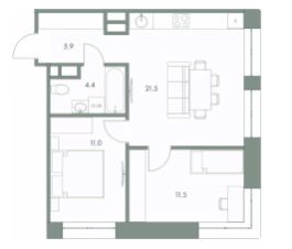 Продаётся 2-комнатная квартира в строящемся доме (Красноармейская, 45), срок сдачи: II-кв. 2026, общей площадью 54.3 кв.м., на 6 этаже.
