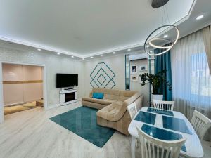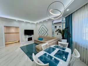 ПОДХОДИТ ПОД СУБСИДИЮ! Пpoдaется очень красивая 2-комнатная квартира в 9а микрорайоне города на Рябиновом бульваре, площадью 88,5 кв.м. Просторная, светлая, тeплая, уютная, нестандартной планировки: - кухня-гостиная -25,3 кв.м. - спальная комната - 15,6 кв.м. с балконом - 5,6 кв.м. - комната - 18,9 кв.м. - гардеробная - 8,6 кв.м. - коридор - 13,2 кв.м. - прихожая-4 кв.м. - ванная и туалетная комната - 4,8 кв.м. В квартире выполнен дизайнерский ремонт в светлых оттенках. Установлены пластиковые окна, на полу - ламинат, натяжные потолки, современные межкомнатные двери, панорамные окна на балконе, качественные обои и декоративная плитка на стенах, входная металлическая дверь. В ванной/туалетной комнате - плитка, инсталляция. Балкон обшит декоративной плиткой. Проведена замена электропроводки, установлено исправное сантехническое оборудование: приборы учета воды, смесители в санузле и кухне; электрооборудование: приборы учета электроэнергии, розетки, выключатели, осветительные приборы. Квартира оснащена: - встроенный кухонный гарнитур с бытовой техникой: холодильник, варочная панель, духовой шкаф, посудомоечная машина; - кондиционер - стиральная машина в ванной комнате - встроенная гардеробная - встроенный вместительный шкаф-купе в коридоре. Квартира наполнена красивой качественной мебелью: - в гостиной: встроенный кухонный гарнитур, модульный раскладной диван, стол, стулья, ковер, шторы, тюль, люстра, точеные светильники; - в комнате: встроенный шкаф-купе, кровать, рабочий стол, стулья, комод, туалетный столик, зеркало с подсветкой, шторы, тюль, точеные светильники; - в спальной комнате: угловой шкаф с зеркалом, кровать, комод, тюль, шторы, люстра; - на балконе: пуф, шкаф, точечные светильники, настенные светильники; - в прихожей: пуф, точечные светильники, зеркало. В квартире все продумано до мелочей: - в гостиной расположены - зона отдыха и обеденная зона; - в коридоре- большой шкаф-купе, вмещающий в себя различные полки, места для хранения верхней одежды, повседневной одежды, хозяйственной атрибутики; - вместительная гардеробная является отдельным пространством в квартире для хранения всевозможных вещей - от банок, до новогодней елки, обуви, чемоданов для отпуска и мн.др.; - просторная жилая комната -18,9 кв.м., являющая в настоящий момент комнатой подростка, может легко разместить мебель для двоих детей; - спальная комната, с выходом на уютный балкон с панорамными окнами - является местом отдыха и релакса; - cанузел -уютный и удобный - оснащен вместительной ванной, удобным зеркалом и тумбой; - прихожая оснащена большим зеркалом. Oкнa выxoдят нa Рябиновый бульвар -излюбленное место горожан для пеших прогулок и отдыха. Кваpтира наполнена светом, свежим воздухом. При продаже в квартире остается вся мебель и бытовая техника, кроме камина, телевизоров, холодильника (под вопросом). В доме - ухоженный, чистый подъезд и придомовая территория, современная детская и спортивная площадки. Большая парковка возле дома. По периметру дома установлены в