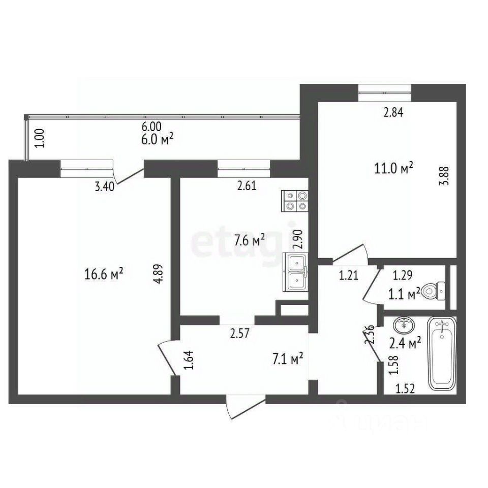 Двухкомнатная квартира площадью 48 м² расположена в центре города. Планировка продумана: изолированные комнаты позволяют разместить спальню и гостиную, кухня 7.6 м² оборудована местом для полноценной обеденной зоны. Санузел раздельный. Дополнительное удобство обеспечивает встроенная кладовая — место для хранения вещей без ущерба жилому пространству.
