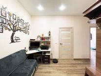 В квартире сделан современный ремонт: потолки натяжные высотой 3 метра , окна пластиковые , входная дверь железная. Полы в кухне и ванне кафель , в коридоре и комнате ламинат, везде с подогревом. Балкон обшит , во всю стену установлен шкаф для хранения вещей. Электрика новая, окна пластиковые .