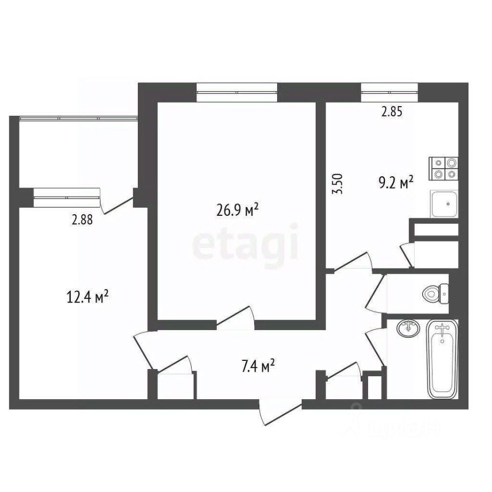 - Окна выходят во двор, обеспечивая тишину и хорошую инсоляцию.