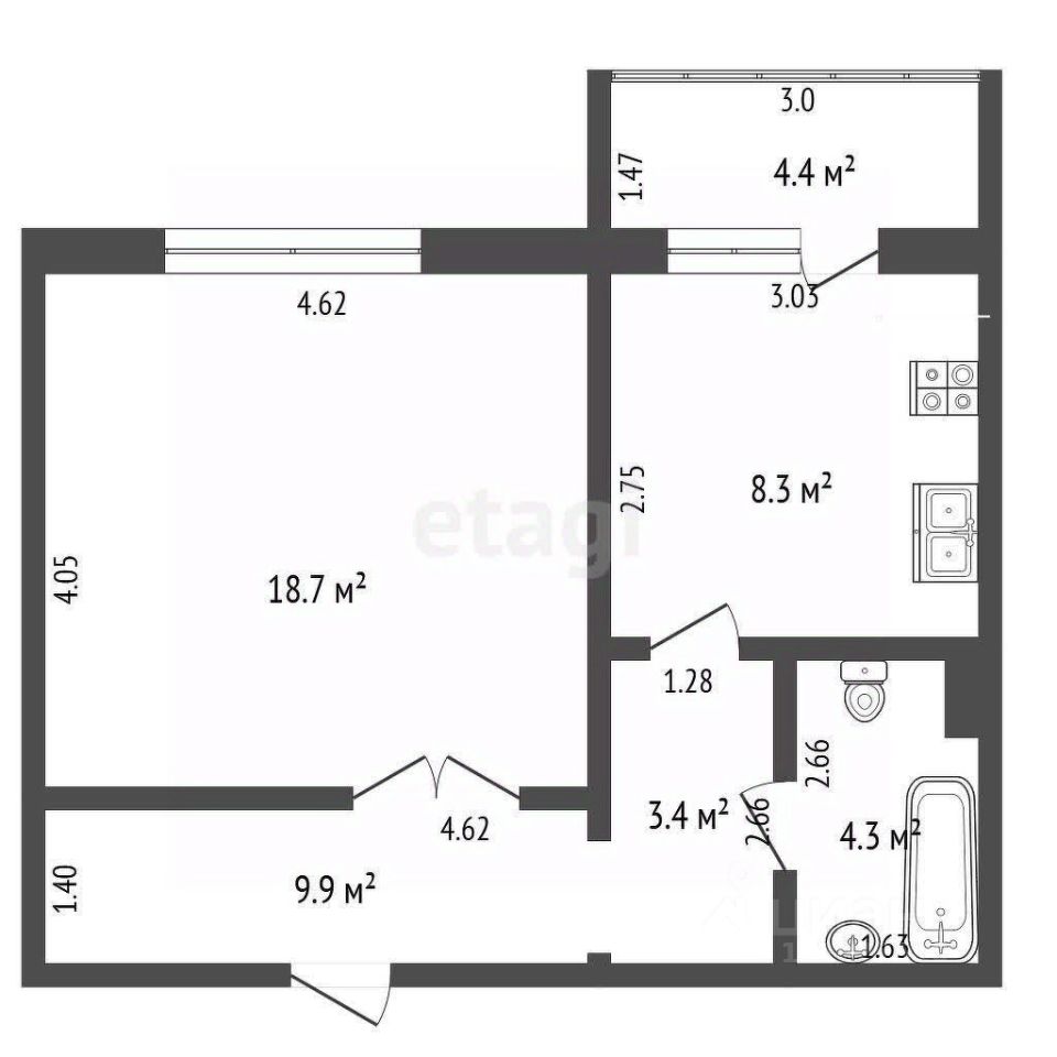 18,7 м²