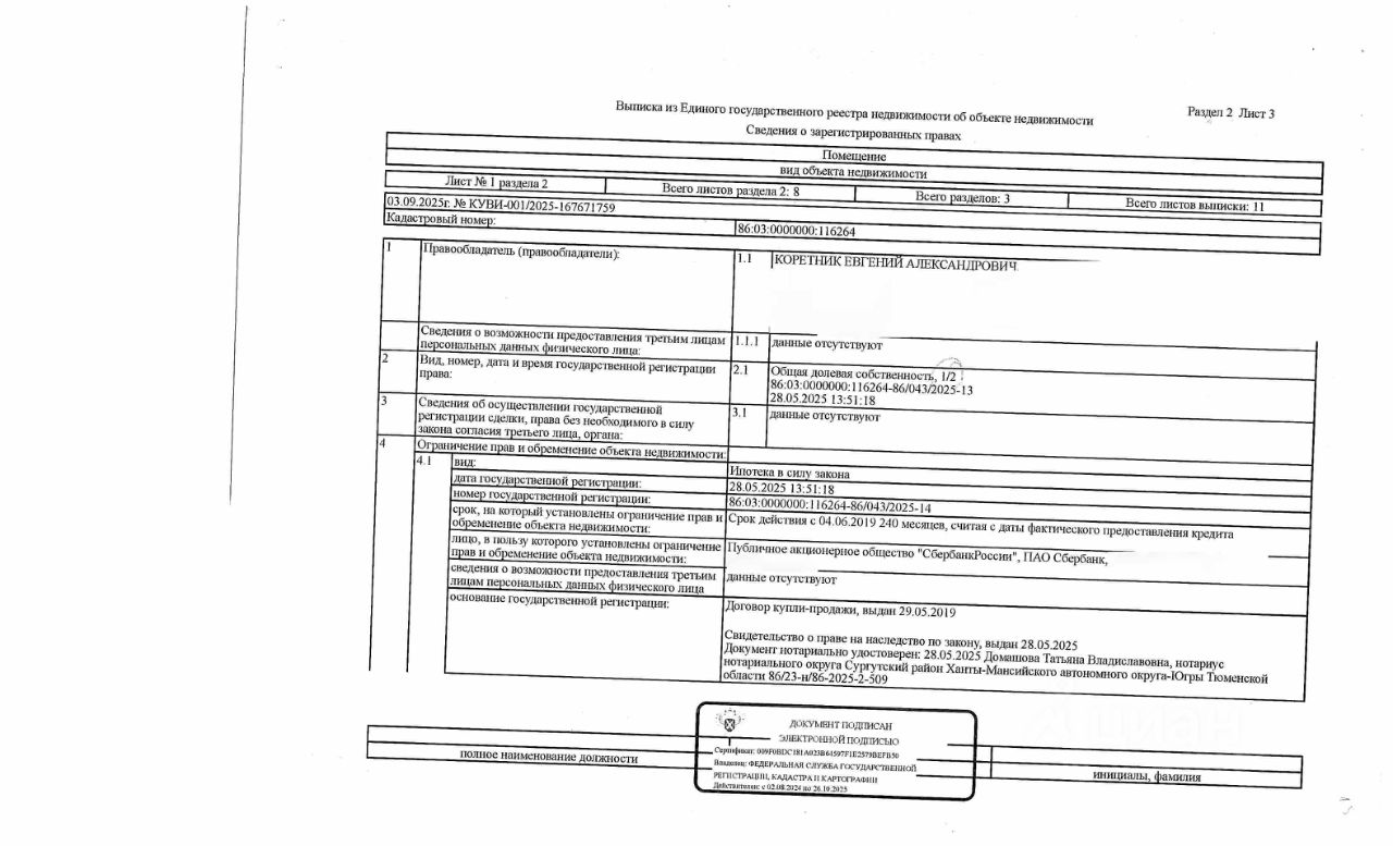 Должник: Ботанов С.Г., собственник: Ботанов С.Г., Коретник Е.А. Лот: Жилое помещение (квартира), площадь 61,4 кв.м., кадастровый номер: 86:03:0000000:116264, р-н Сургутский, пгт Белый Яр, мкр.1-й, д.5, кв.55 (зарегистрировано 2 взрослых ), н/ц: 5367000 р, з-к: 5367 р., код: 0014, рег. 25-461;