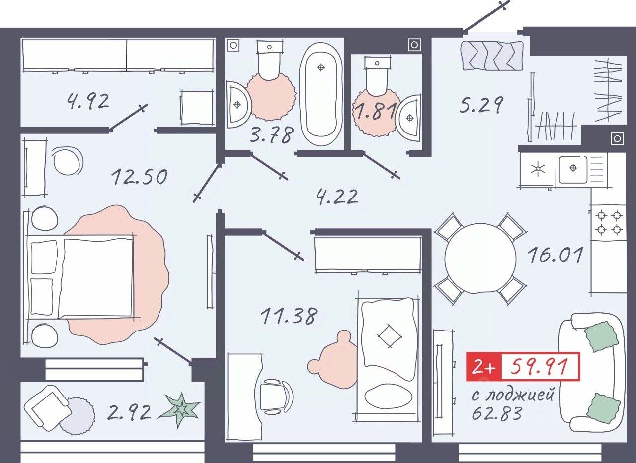 Общая площадь59,91 м²
