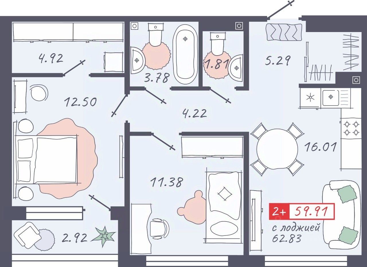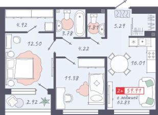 Общая площадь59,91 м²