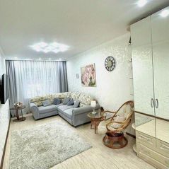 Особенности: свежий ремонт, большие окна, встроенная техника, мягкая мебель, кухонный гарнитур, шкафы купе, домофон, охранная сигнализация.