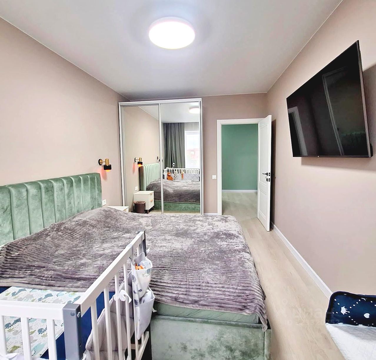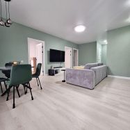 - пол: комнаты, кухня-гостиная, коридор кварцвиниловое покрытие, в санузлах кафельная плитка;
