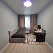 Жилые комнаты изолированные (13,3 м²+12,6 м²+13,4 м²), большая кухня-гостиная (30 м²), санузел раздельный, застекленный окнами ПВХ балкон, в квартире везде установлены пластиковые окна, имеются счетчики на холодное водоснабжение и электроэнергию.