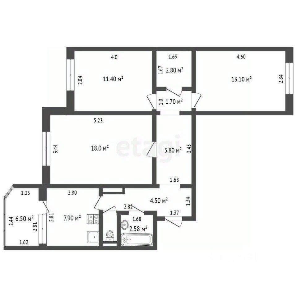 68,8 м²