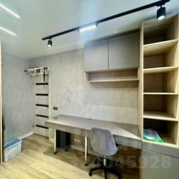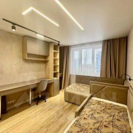 в детской комнате: две кровати (новые), встроенный шкаф-купе с зеркалами, корпусная мебель (стол, полки, шкаф);