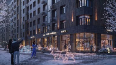 Восьмиэтажная застройка облицована в современном стиле из эко-материалов с текстурой камня и дерева. Растения в вазонах и деревянные элементы окунут вас в атмосферу хвойного леса.