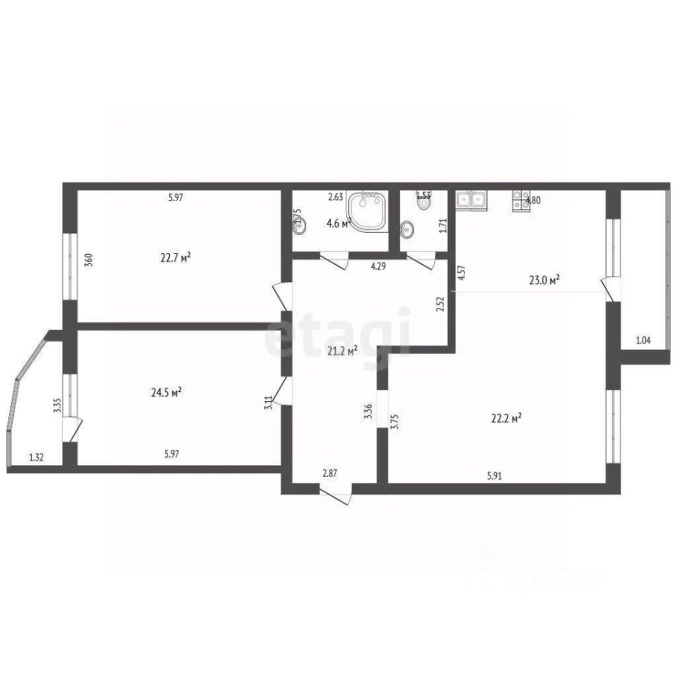 - прихожая 21.2 кв.м - ванная комната 4 кв.м.
