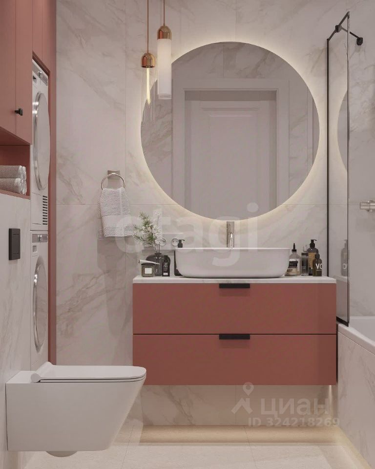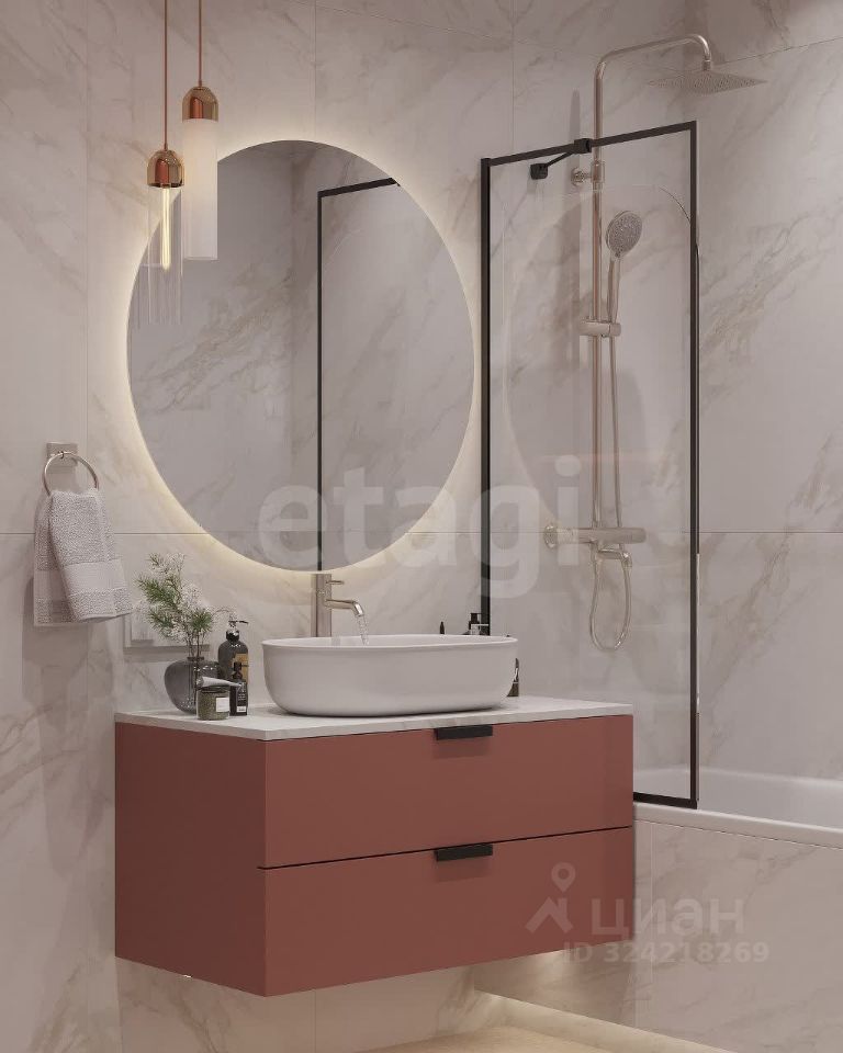 • Санузлы с частичной отделкой керамогранитом (фото дизайн-проекта ванной и туалета приложены)