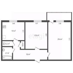 56,9 м²