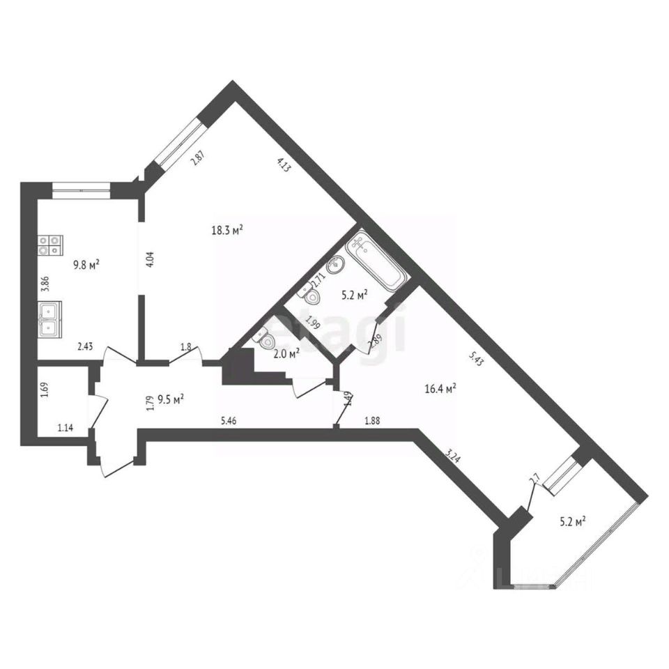 9,8 м²