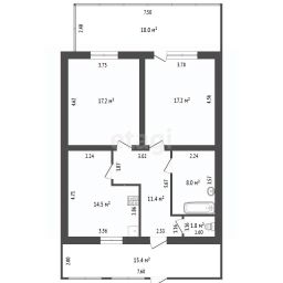В доме центральное отопление, водоснабжение и канализация, установлен бойлер на 100л, имеется два кондиционера.