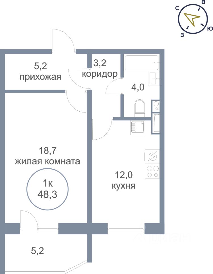 Общая площадь48,3 м²