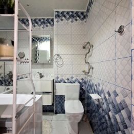- потолки: в комнатах, коридоре, кухне окрашены, в санузле облицованы пластиковыми панелями;