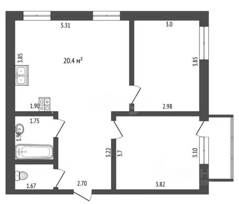 63 м² (без балкона — 57 м²)