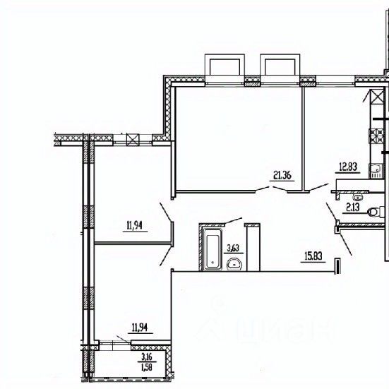 Площадь кухни12,8 м²