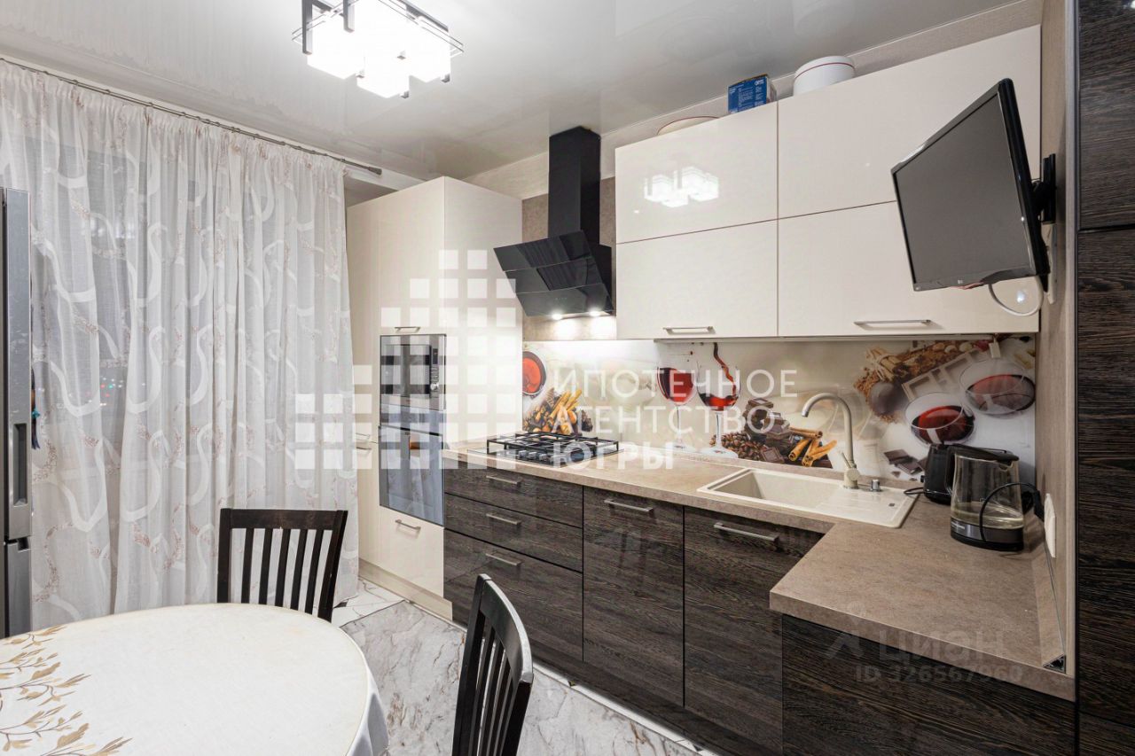 Кухня гостиная большая, вместительная. Установлен качественный кухонный гарнитур и вся встроенная необходимая техника.