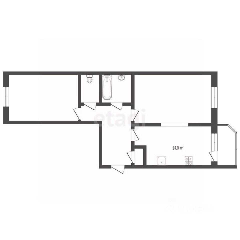 Площадь 66,7 кв. м. + балкон 3,41 кв. м.
