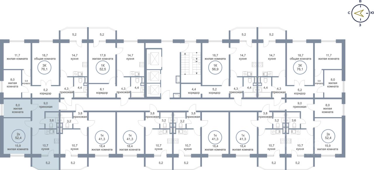 Общая площадь52,4 м²
