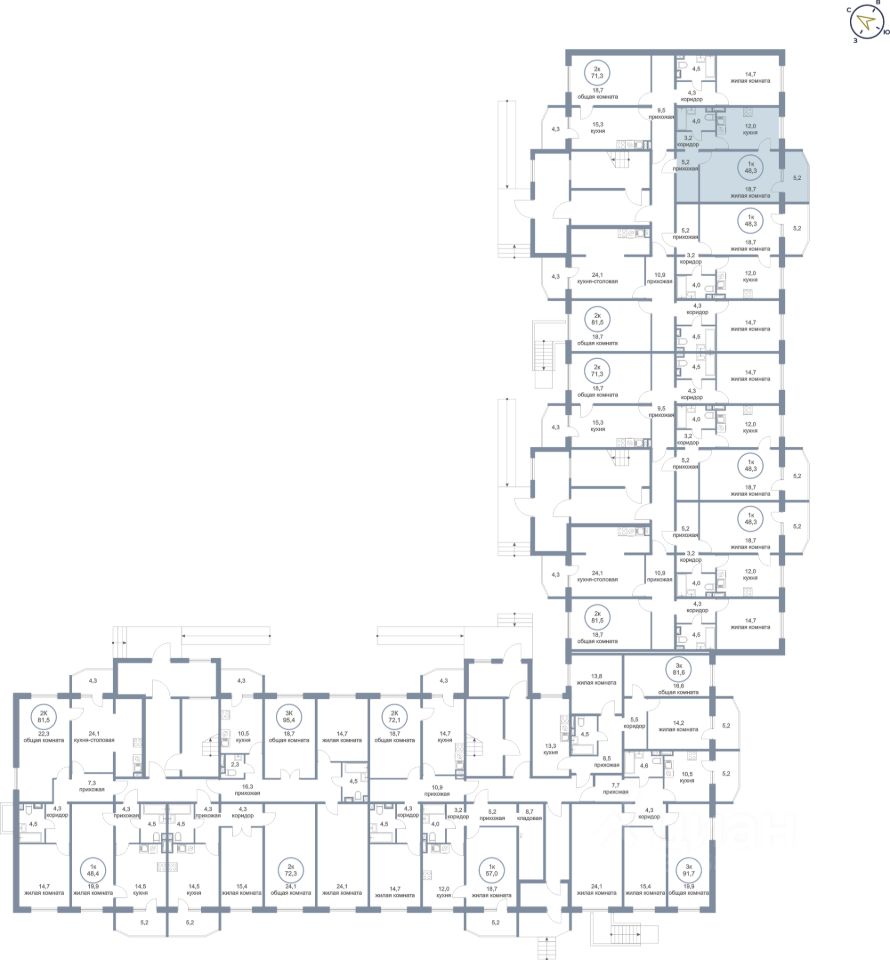Продаётся 1-комнатная квартира в сданном доме (Молодёжная, 6А), срок сдачи: IV-кв. 2025, общей площадью 48.3 кв.м., на 1 этаже. Новый жилой комплекс "Молодежный" от застройщика "Сибпромстрой" расположен по адресу: Ханты-Мансийский автономный округ, посёлок Солнечный, Молодёжная улица.