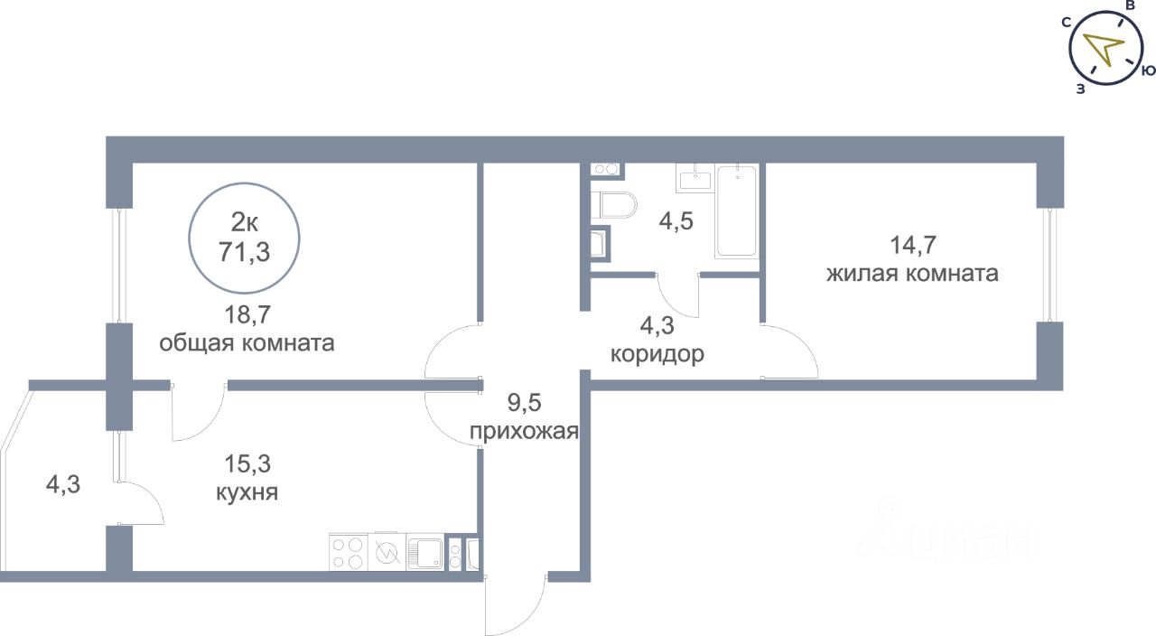 Общая площадь71,3 м²