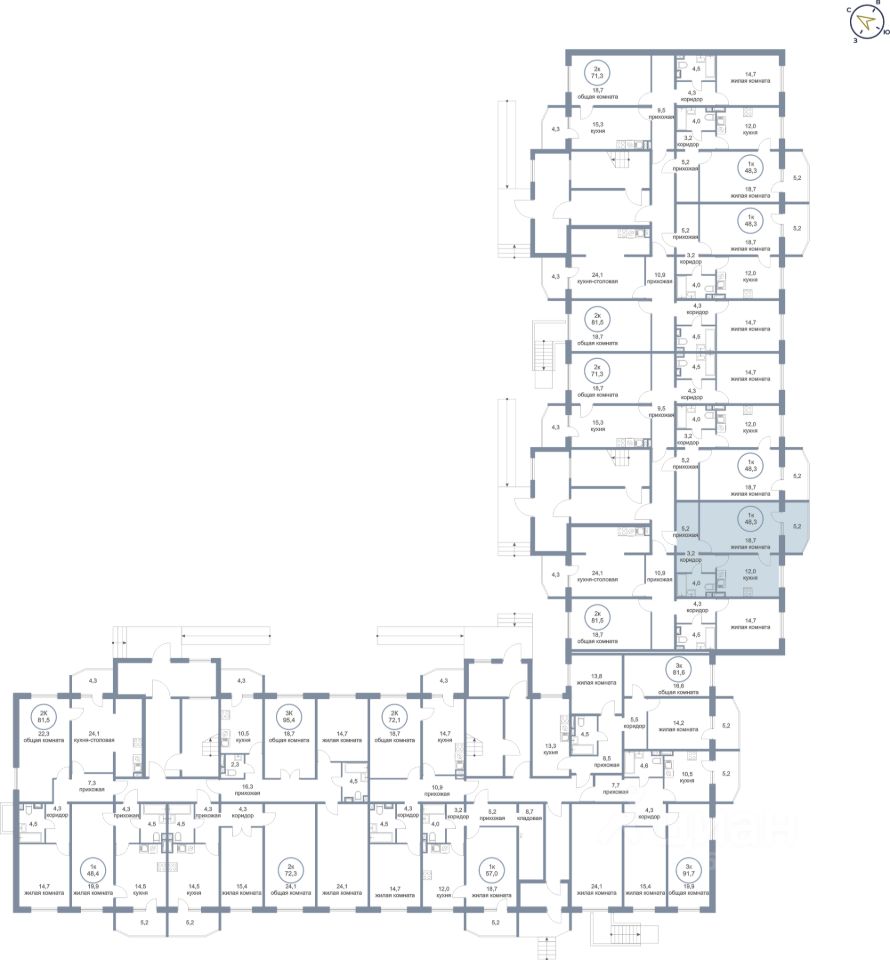 Продаётся 1-комнатная квартира в сданном доме (Молодёжная, 6А), срок сдачи: IV-кв. 2025, общей площадью 48.3 кв.м., на 1 этаже. Новый жилой комплекс "Молодежный" от застройщика "Сибпромстрой" расположен по адресу: Ханты-Мансийский автономный округ, посёлок Солнечный, Молодёжная улица.