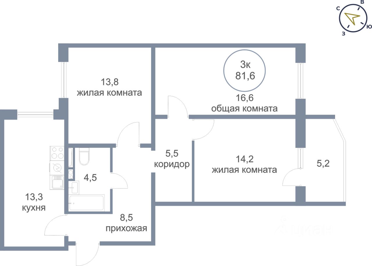 Продаётся 3-комнатная квартира в сданном доме (Молодёжная, 6А), срок сдачи: IV-кв. 2025, общей площадью 81.6 кв.м., на 1 этаже. Новый жилой комплекс "Молодежный" от застройщика "Сибпромстрой" расположен по адресу: Ханты-Мансийский автономный округ, посёлок Солнечный, Молодёжная улица.