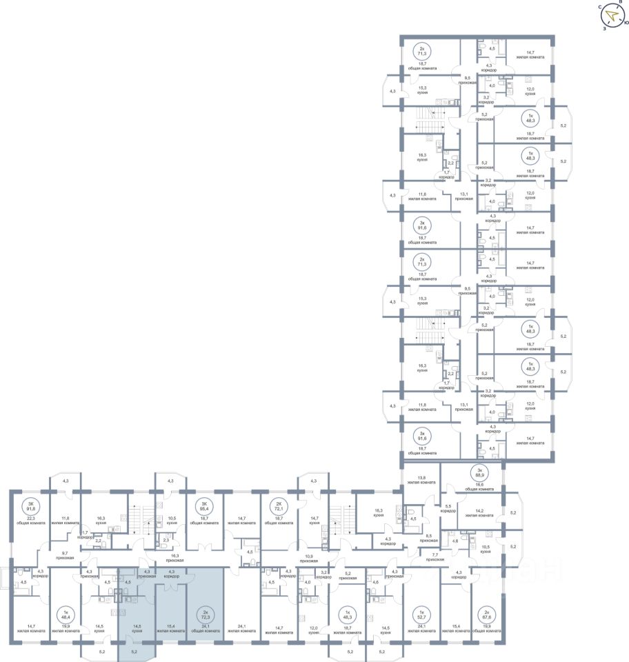 Продаётся 2-комнатная квартира в сданном доме (Молодёжная, 6А), срок сдачи: IV-кв. 2025, общей площадью 72.3 кв.м., на 3 этаже. Новый жилой комплекс "Молодежный" от застройщика "Сибпромстрой" расположен по адресу: Ханты-Мансийский автономный округ, посёлок Солнечный, Молодёжная улица.
