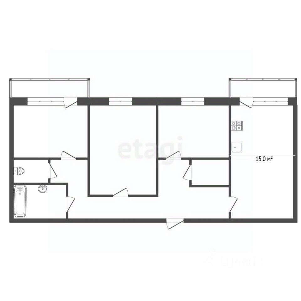 Планировка: три изолированные жилые комнаты и раздельный санузел.