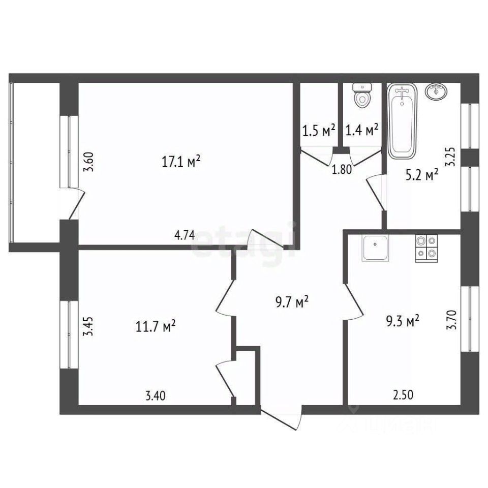 56,8 м²