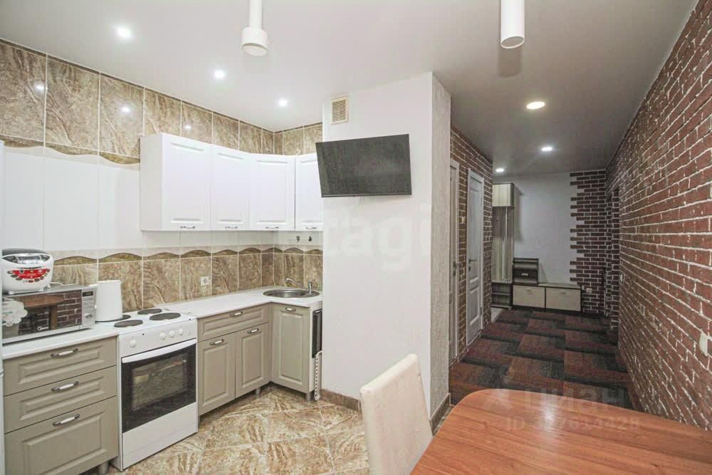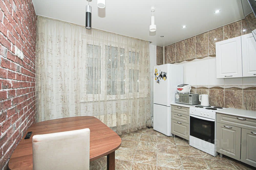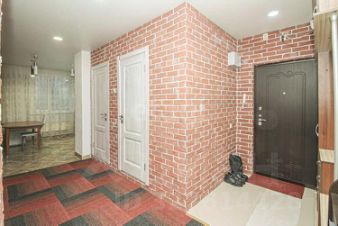 Особенностью интерьера является акцентная стена из декоративного красного кирпича, добавляющая пространству индивидуальности. Ключевое преимущество — полная готовность к заселению: вся кухонная и встроенная мебель, а также бытовая техника (за исключением телевизора и кровати) остаются новому владельцу.