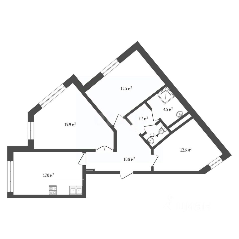 Наличие раздельного санузла добавляет удобства в повседневное использование пространства.