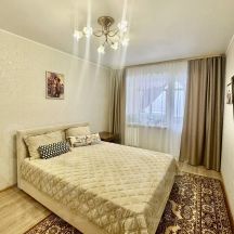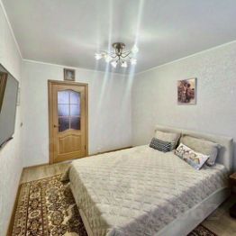 Квартира чистая, светлая, теплая, просторная, уютная, в хорошем жилом состоянии: залиты полы, выровнены стены, потолки, заменена электропроводка, трубы, установлены пластиковые окна, межкомнатные двери из натурального дерева с декоративными стеклами, на полу-линолеум, качественная входная металлическая дверь. В ванной комнате-кафель, в туалетной комнате- панели.