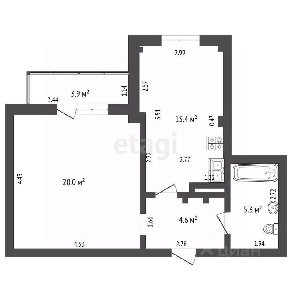 15,4 м²