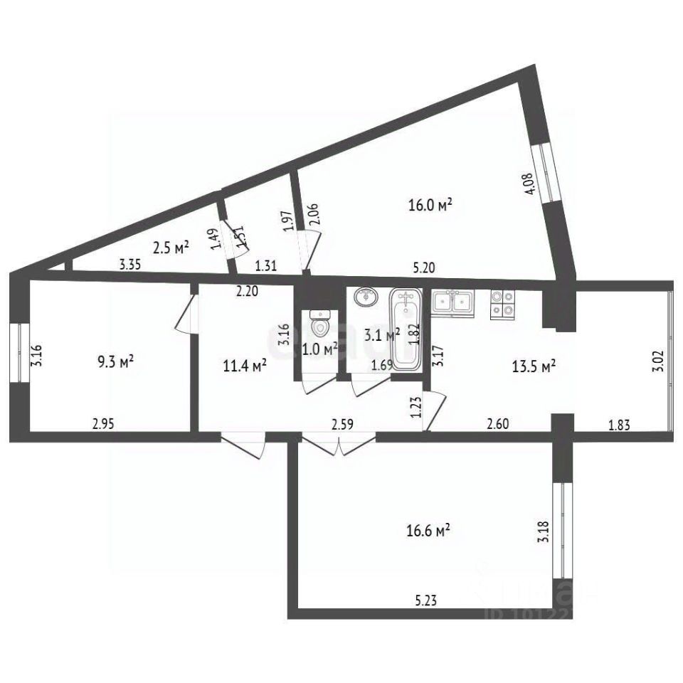 3 изолированные комнаты (жилая площадь 41,6 м²) + кухня 13,5 м² — хватит места для всех!